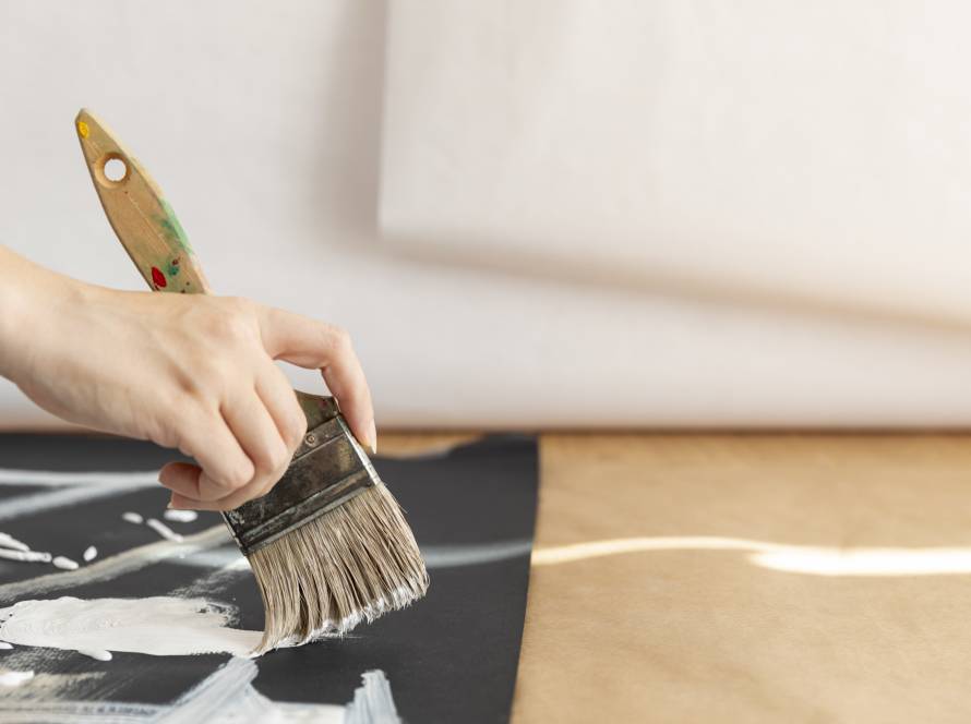 Wir verwenden hochwertige Farbrollen für eine gleichmäßige Farbverteilung, warten auf vollständige Trocknung und wiederholen den Vorgang bei Bedarf.